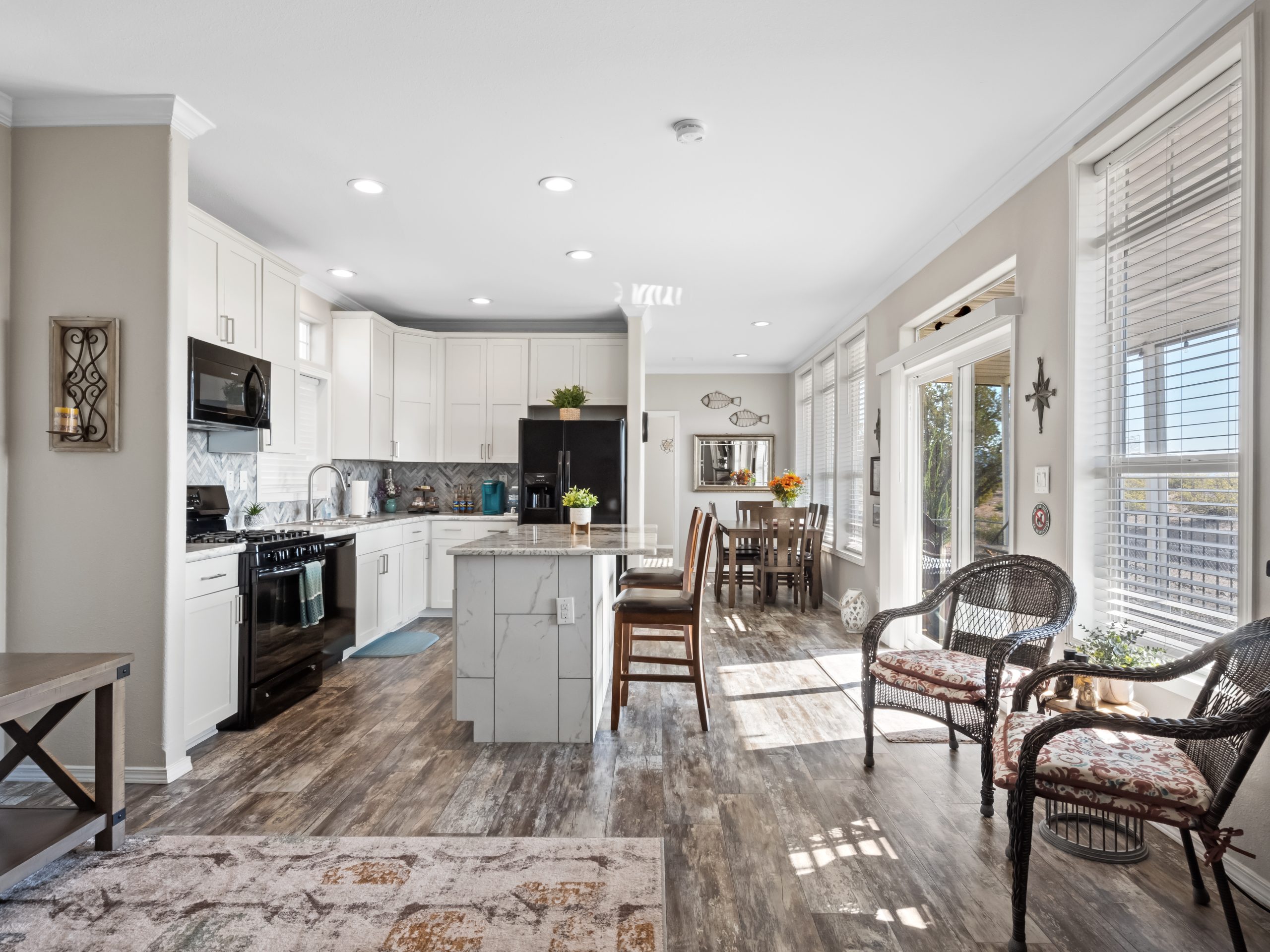 At Elephant Butte Lake. 2 Bedroom, 2 Bath  single wide ground set home, completely furnished with furniture, decor, linens, towels, & kitchen wares, outstanding lake views, separate garage, & FOUR individual RV spaces EACH complete with one electric box, septic tank, & water hookup. A great lake property that will give you a home and four RV spaces.